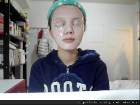 當然不可能坐著敷臉,這樣就有點太蠢了,我眼睛部分的面膜看起來要掉要掉,是因為地心引力所以down down down